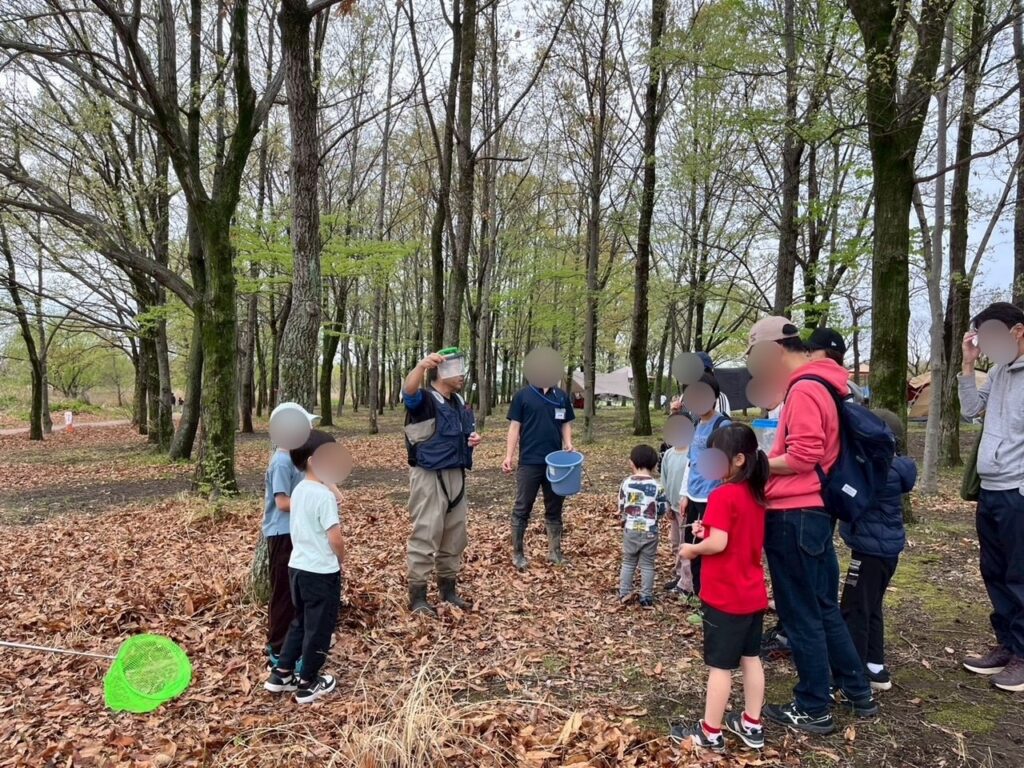 埼玉県寄居町にあります埼玉県立川の博物館の学芸員 藤田先生にお越しいただき、皆さんとびん沼自然公園のキャンプ場やびん沼川の自然や生き物を実際に探しながら学びました。