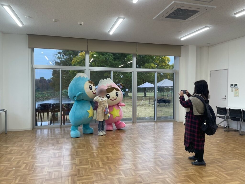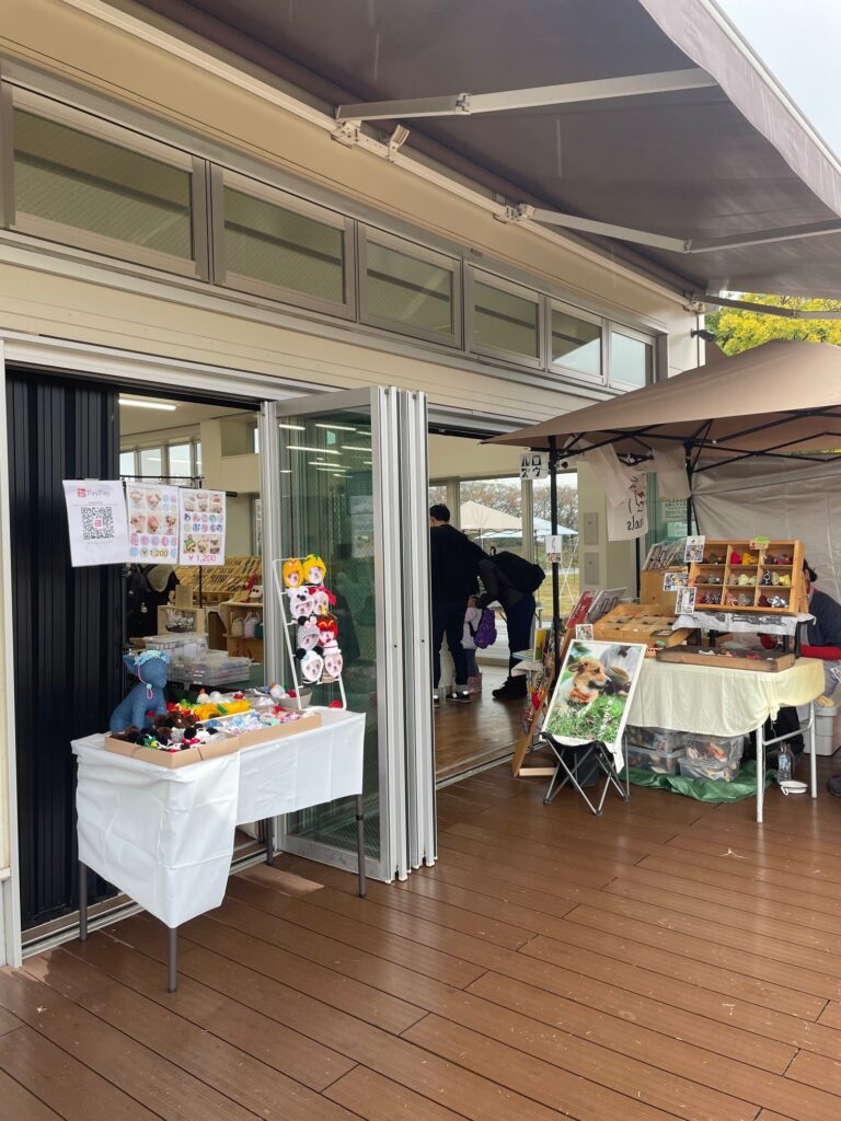 広場で実施予定でしたが、急遽公園管理棟に設営していただきました。