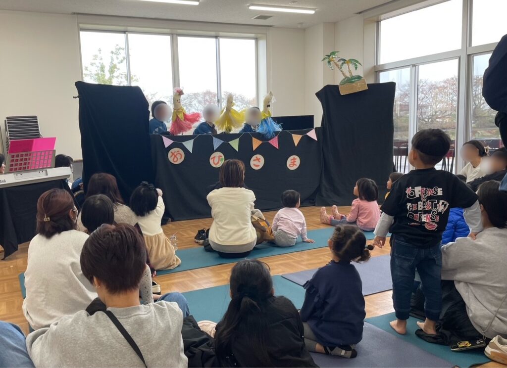 毎度大人気の人形劇。今回広場ではなく多目的室での開催となりましたが、多くの方にお集まりいただきました!