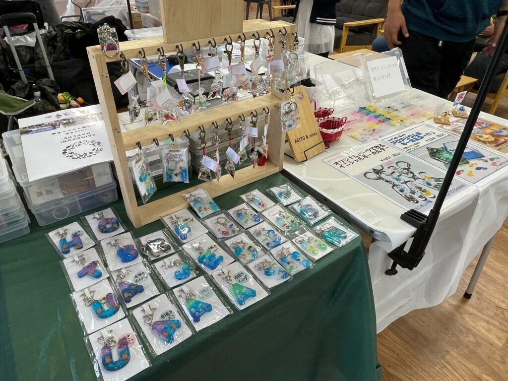 種類豊富なハンドメイド作品が並び、ワークショップではお子さまだけでなく、大人の方もお楽しみいただけるものもあり、作家さんとお客さんが笑顔で交流されている姿が見えました。