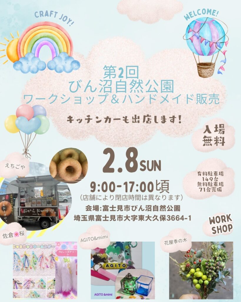 2/8(日)ワークショップ・ハンドメイド販売開催のおしらせ