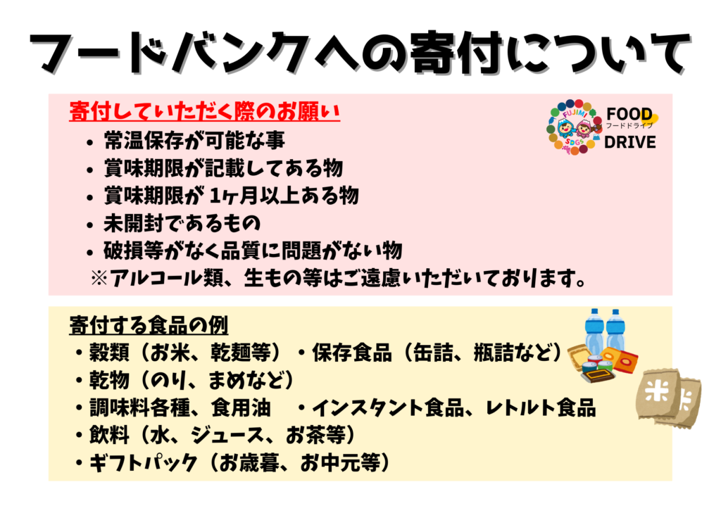 4月5日(日)開催のびんぬマルシェ内でフードドライブを実施します。