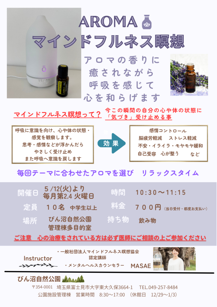 5月より第2・4火曜日「AROMAマインドフルネス瞑想」開催のおしらせ