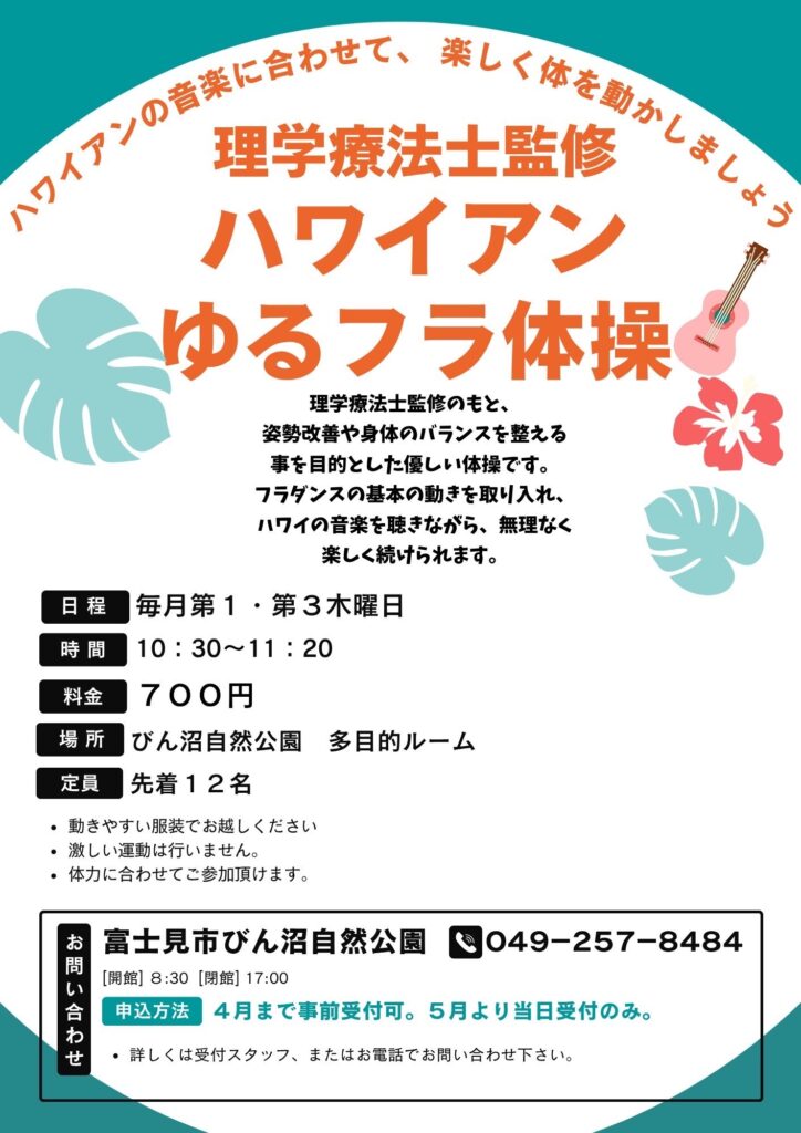【申込受付中】「ハワイアンゆるフラ体操」4月開催のおしらせ