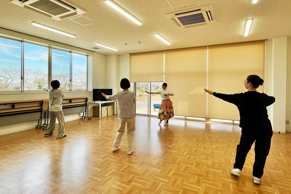 ストレッチと気功体操で体をほぐし、気血を促進した後は、太極拳の基本動作(24式)をゆっくり習得していきます。
